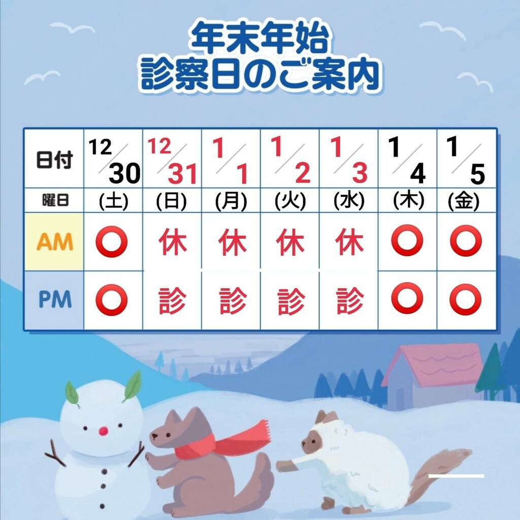 ❄️年末年始は 12月31日(土)~1月3日(火)まで完全休診となります。