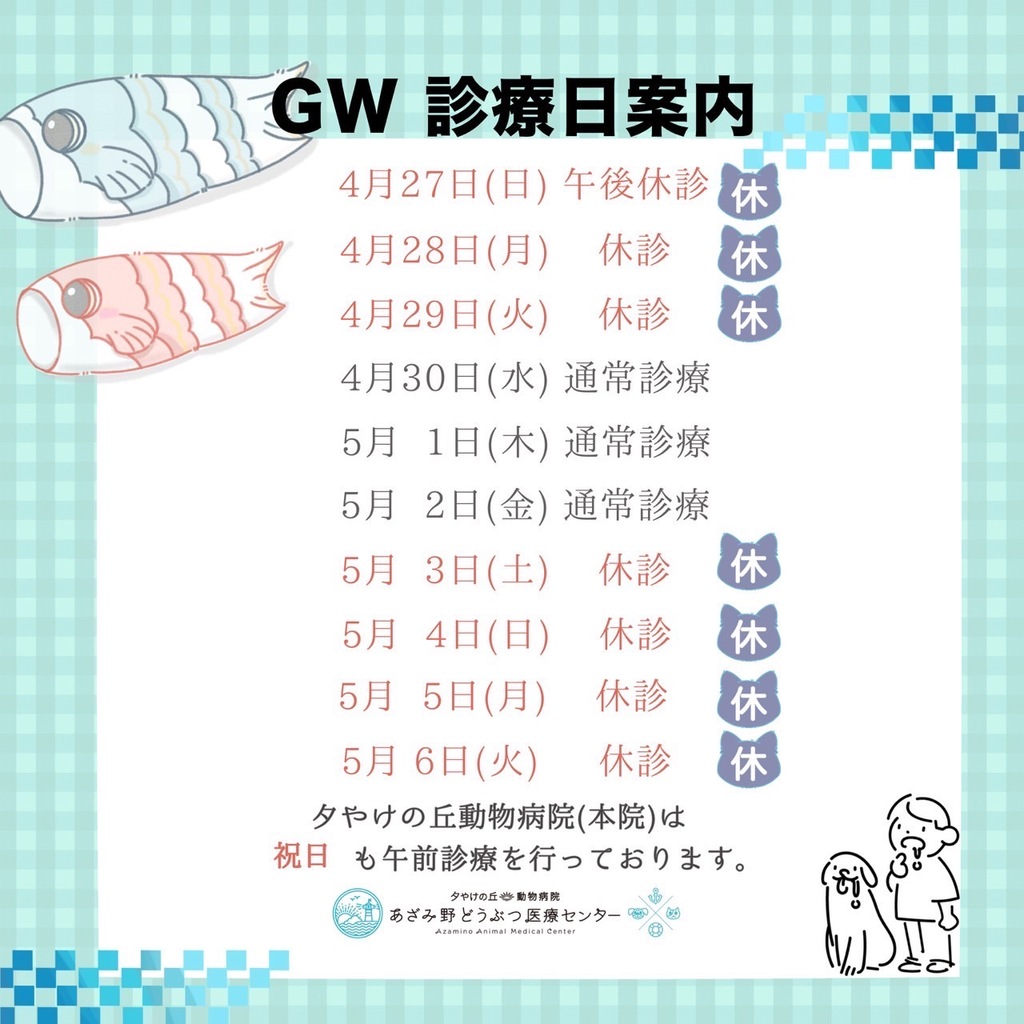 2025年ゴールデンウィークの診療日は下記の通りです。