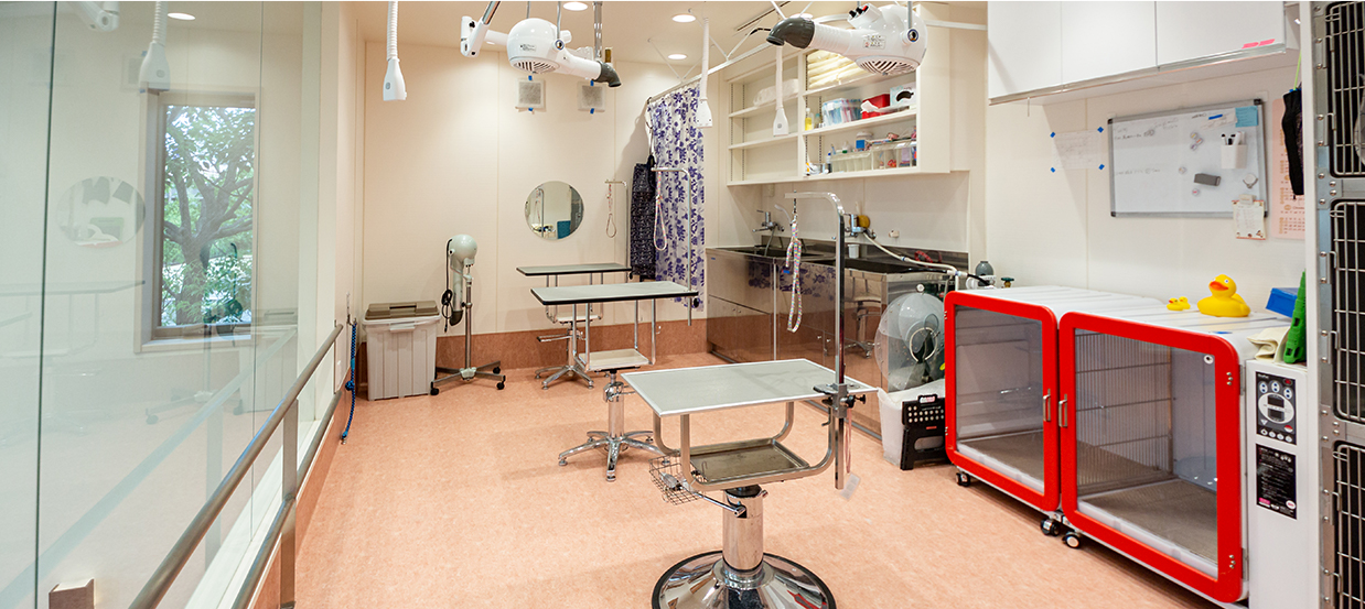 これらのワンちゃんにつきましては、獣医師の指示により動物診療助手の資格を有するトリマーが担当致します。(別途、看護技術料を頂戴致します)