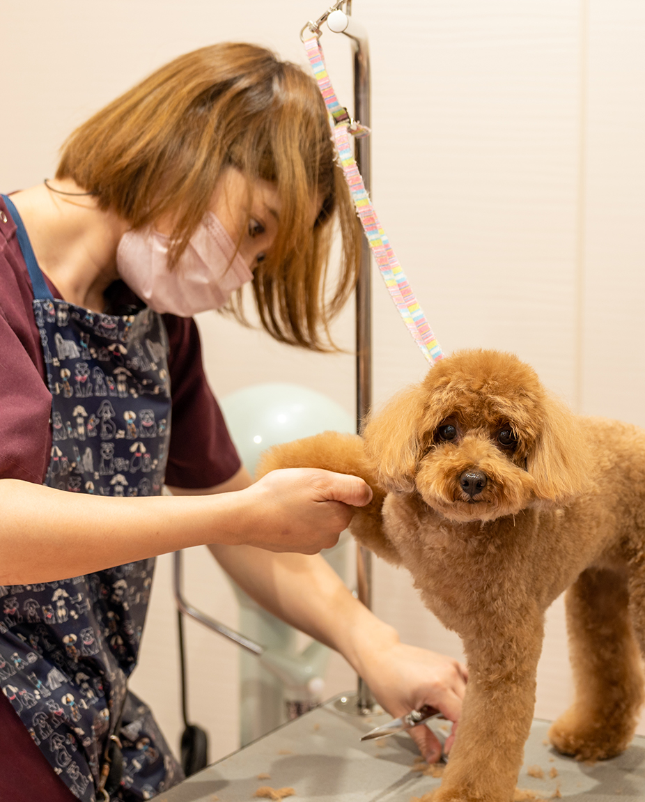 トリミング専属のトリマーならびに動物診療助手資格を持つトリマーが、サロン品質のトリミングを実施しています。ご要望はなんでもお聞かせください。