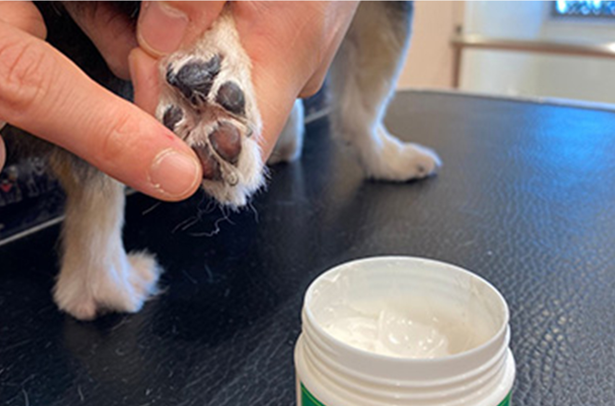 肉球に塗ることで、さらさら、すべすべの肉球になります。べたつかず、肌なじみが良いのが特徴です。