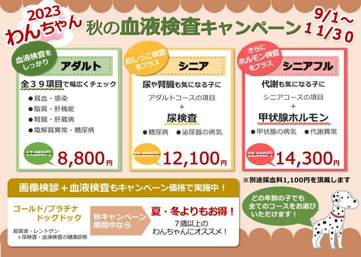 わんちゃんは1年で人間の約4歳分、歳をとるといわれています。春に検査を受けたわんちゃんも、この半年で人間でいうと約2年が経過したことになります💡 人間が年1回健康診断を受けるように、わんちゃんも歳をとるスピードに合わせて、年1回以上健康診断を受けることをおすすめします✨️
