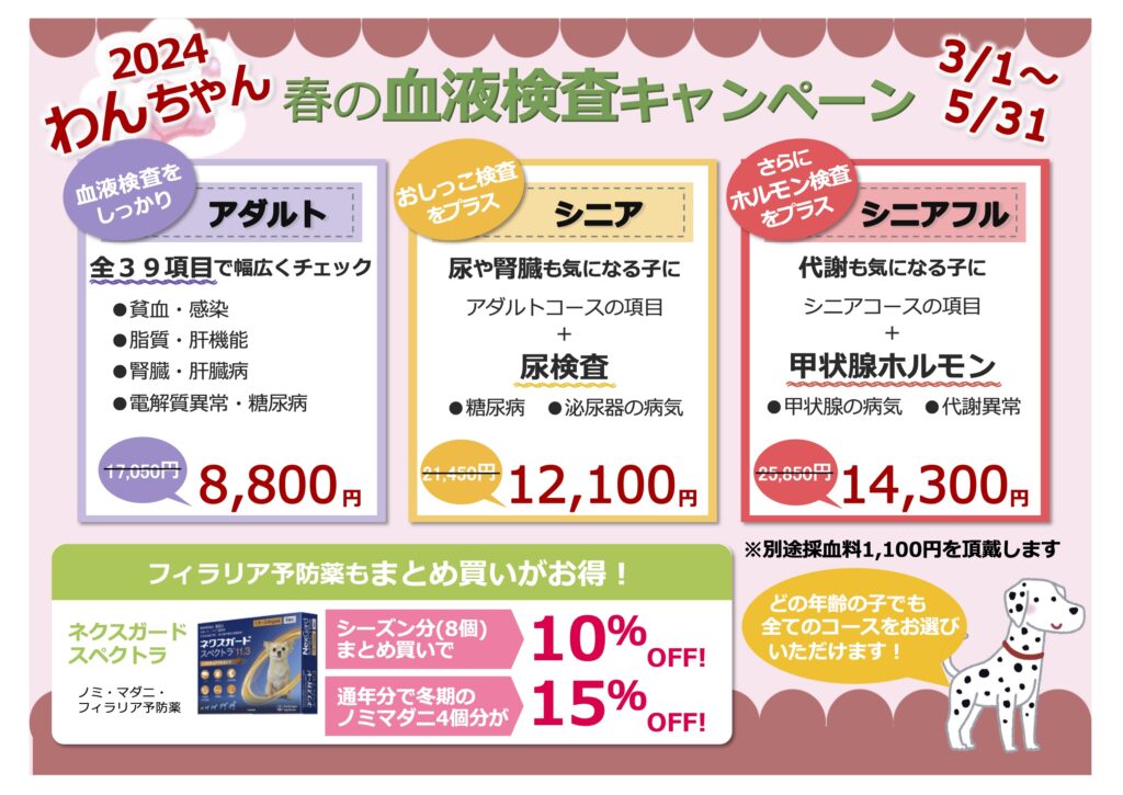 わんちゃん 春の血液検査キャンペーン🐕 【~5/31まで】